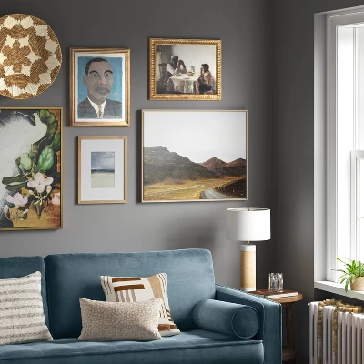 - Painting set in a sleek gold frame adds a nice touch to decor styles