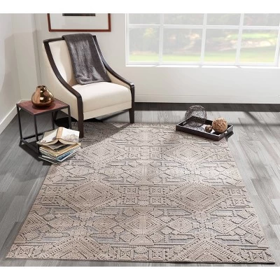 Graphic ethnic motifs fill this indoor area rug collection with standout styles to stand upon. From geometric geometric designs to scrolling French filigree, the exotic rug assortment offers multiple options for accessorizing interior floors. A blend of synthetic and soft chenille fibers lends a sculptural quality to each decorative floorcovering, using depth and dimension to define the edges of every intricate pattern.