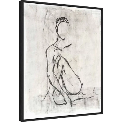 ART DESCRIPTION: This simple contour line drawing of a female nude has a museum quality to it. In the print, the figure is seated, and while it is incomplete, you get the suggestion of her grace and beauty. This Amanti Art canvas art print was created by Ethan Harper and printed by Amanti Art in Madison WI. The canvas is stretched by hand and finished with a float frame. Individually made using traditional custom framing techniques, it has the quality you would expect from your local frame shop. Because of our attention to detail and focus on artistry, architects, interior designers, and homeowners alike choose this framed canvas artwork to create beautiful living spaces.