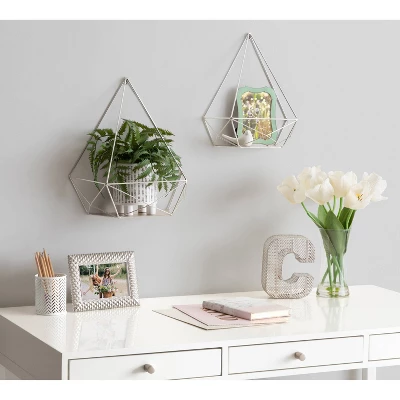 - Hang these lovely geometric styled shelves on a hook or screw as an elegant way to add understated glamour to a room or set them on a flat surface like a console or desk pushed up against a wall as a stylish way to display ornaments or candles