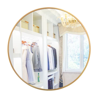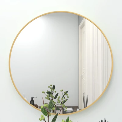 This round mirror features a small circle design, making it a stylish choice for wall decor. The aluminum frame, available in brushed gold or black, complements various styles and color schemes. The frame not only adds an elegant touch but also provides protection to the mirror with its angled design.Crafted with high quality floating annealed glass which can prevent warping and distortion, give you a real HD imaging. Lead and copper free environmentally friendly silver back keep durable in moist environments.To ensure safe delivery, the mirror is thoughtfully packaged with rounded corners intact. Whether you’re looking for a circle wall mirror in sizes such as 32×32, 28×28, or 24×24, or a larger circle mirror for wall, this versatile mirror offers various size options to suit your space and preferences.Add a touch of elegance and sophistication to your decor with this gold or black circle mirror. Its well-designed construction and premium features make it an excellent choice for any room, whether it’s for decorative purposes or functional use in bathrooms.