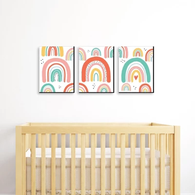 Hello Rainbow Wall Art Set INCLUDES 3 ready-to-hang Boho Rainbow themed panels and non-marking wall mounts for easy hanging. Hello Rainbow artwork is perfect for a nursery, kids’ room, or playroom. Hello Rainbow Wall Art & Kids Room Decor SIZE each 10 inches high x 7.5 inches wide x .5 inches thick. Robot lightweight art prints will arrive ready to use – no frame needed. The black edge gives each print a modern, finished look. EASY TO HANG: Simply attach a non-marking wall mount (included) to each corner of a Hello Rainbow art panel and press to hang in desired location. Wall mounts are repositionable, so you can redesign your artwork display at any time. PREMIUM HOME DECOR: 3-piece Hello Rainbow Wall Art Set is professionally printed on thick material with a black edge. You will not need to frame this set of Rainbow room decor. Each standout print is ready to hang and will add a contemporary touch to any room. MADE IN THE USA: Hello Rainbow Nursery Wall Art & Kids Room Decor is designed and manufactured at our Wisconsin facility using materials that are Made in the USA.