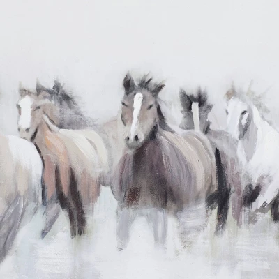 - •Canvas is intricately painted and framed for a majestic herd of horses art display