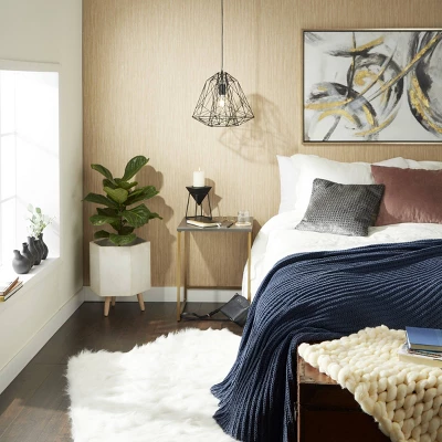 This wall art exude natural beauty and sophistication in both color and composition. Showcase your personality and turn your walls into an art gallery with this impressive wall art. Bring contemporary art to your home space with this framed canvas wall decor displayed on your living room or bedroom walls. This item ships in 1 carton. Water color and acrylic paint over a fabric canvas housed in a textured, metallic gold Chinese fir wood frame with a ½” matte black frame between the two. Can be hung horizontally using the sawtooths on the back; nails and screws not included. Suitable for indoor use only. This item ships fully assembled in one piece. This is a single gold colored canvas wall art. Contemporary style.