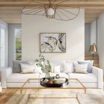 - •Glittered gold and soft gray and black strokes highlight this canvas wall art