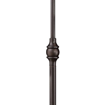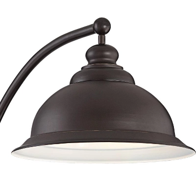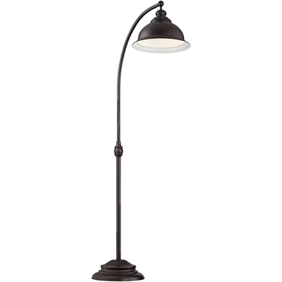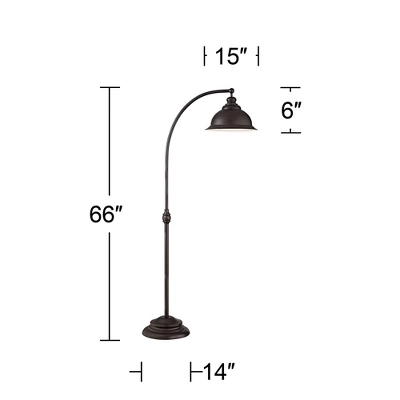 With an arching arm that allows for perfect targeted lighting, this rustic floor lamp features a slim profile and round base. From the Franklin Iron Works brand, it comes in a dark bronze finish. Inspired by industrial and farmhouse style designs, it features sturdy metal construction with a weighted base.