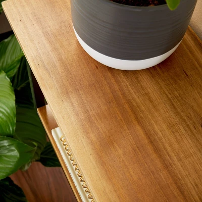 - •This industrial wall shelf highlights a light natural wood brown finish and obsidian black frame finish