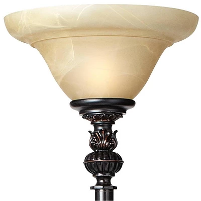 - Kathy Ireland Sonnett traditional floor lamp in a bronze finish.