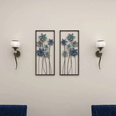 This floral set of wall decorations are ideal for spaces with light-toned interiors that attract natural light. This item ships in 1 carton. Give your wall some life and depth with this botanical wall sculpture décor. Can be hung vertically using the metal rings on the back; nails and screws not included. Suitable for indoor use only. This item ships fully assembled in one piece. This gray colored wall sculptures comes as a set of 2. Traditional style.
