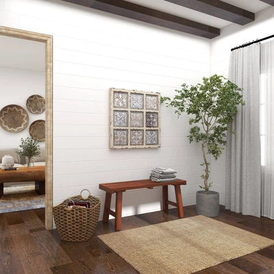 - •This wall plaque features elaborate rustic style flowers etched on the 9 square wood panels
