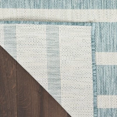 Invite coastal-inspired charm to your home with this striped outdoor rug from the Positano Collection. The space-dyed yarns add nuanced variations in color, while the flat weave construction makes placement a breeze. Roll this modern rug onto your patio, deck, or porch to create a cozy and casual conversation area, or add to your living room, dining room, or kitchen for low-maintenance yet eye-catching style. Machine-made from polypropylene yarns that are durable and easy to clean: simply hose rinse and air dry.