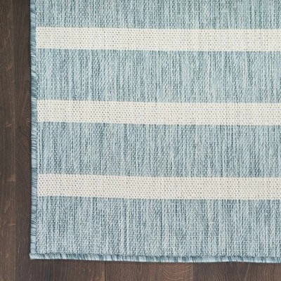 - Striped outdoor rug adds coastal flair to any room