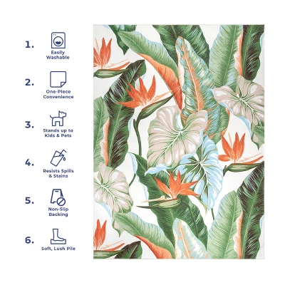 - New and innovative one-piece machine washable rug with the backing layer attached. This conveniently eliminates the hassle of any additional setup, simply lay flat in the desired space upon arrival and after each wash