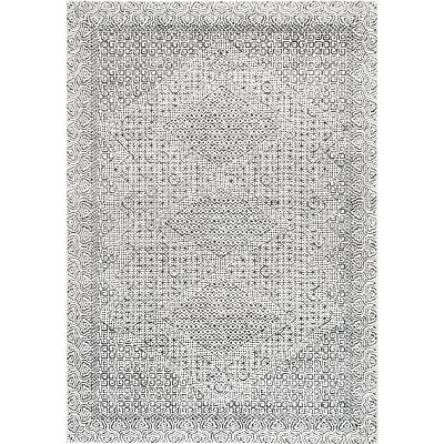 Make a statement with this transitional Moroccan area rug. The intricate geometric motifs make it an ideal enhancement to a modern aesthetic, while also being able to pair with farmhouse designs. Machine made in Turkey from durable soft fibers, this floor covering is built to last while feeling delightful underfoot. Your dream home awaits with our pet-friendly and easy to care for area rugs.