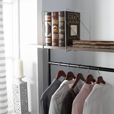 - Securely locks to any solid shelf and prevents clothing from falling over